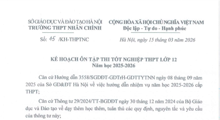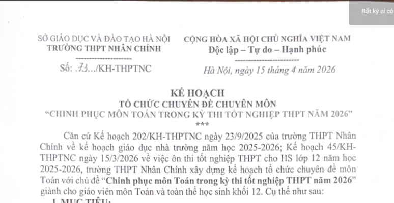 TRƯỜNG THPT NHÂN CHÍNH